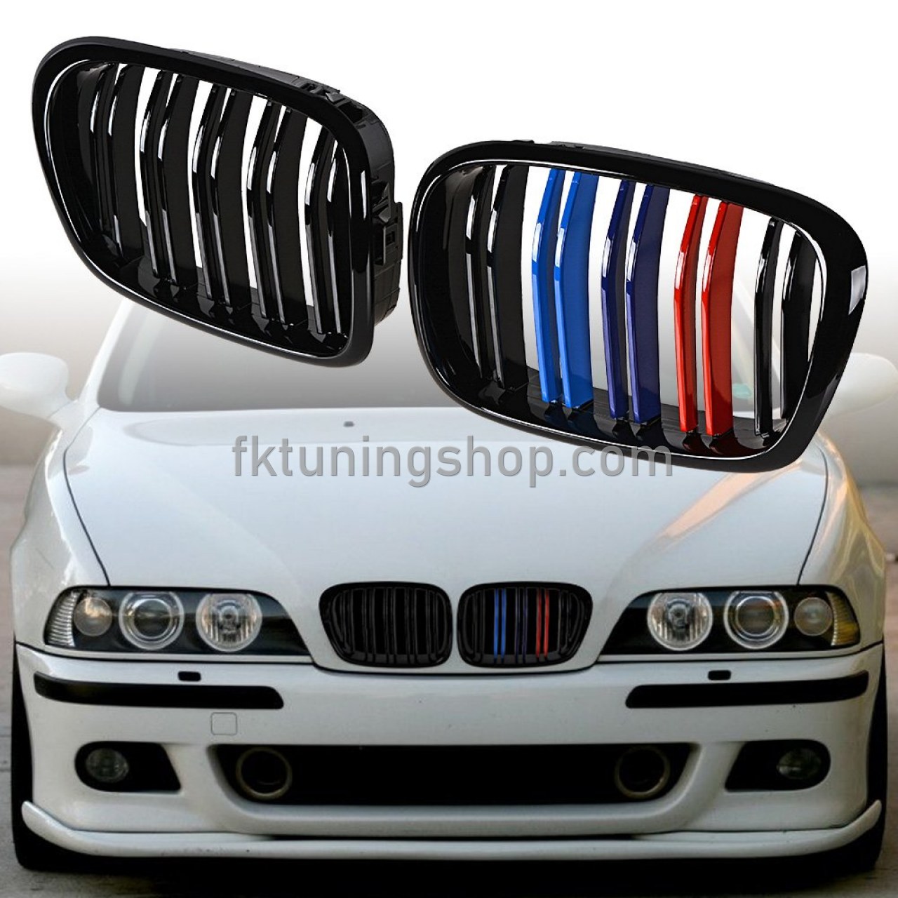 Bmw E39 Ön Panjur Seti Böbrek M Renk Şeritli Dizayn Pianoblack 1996-2003 5 Serisi